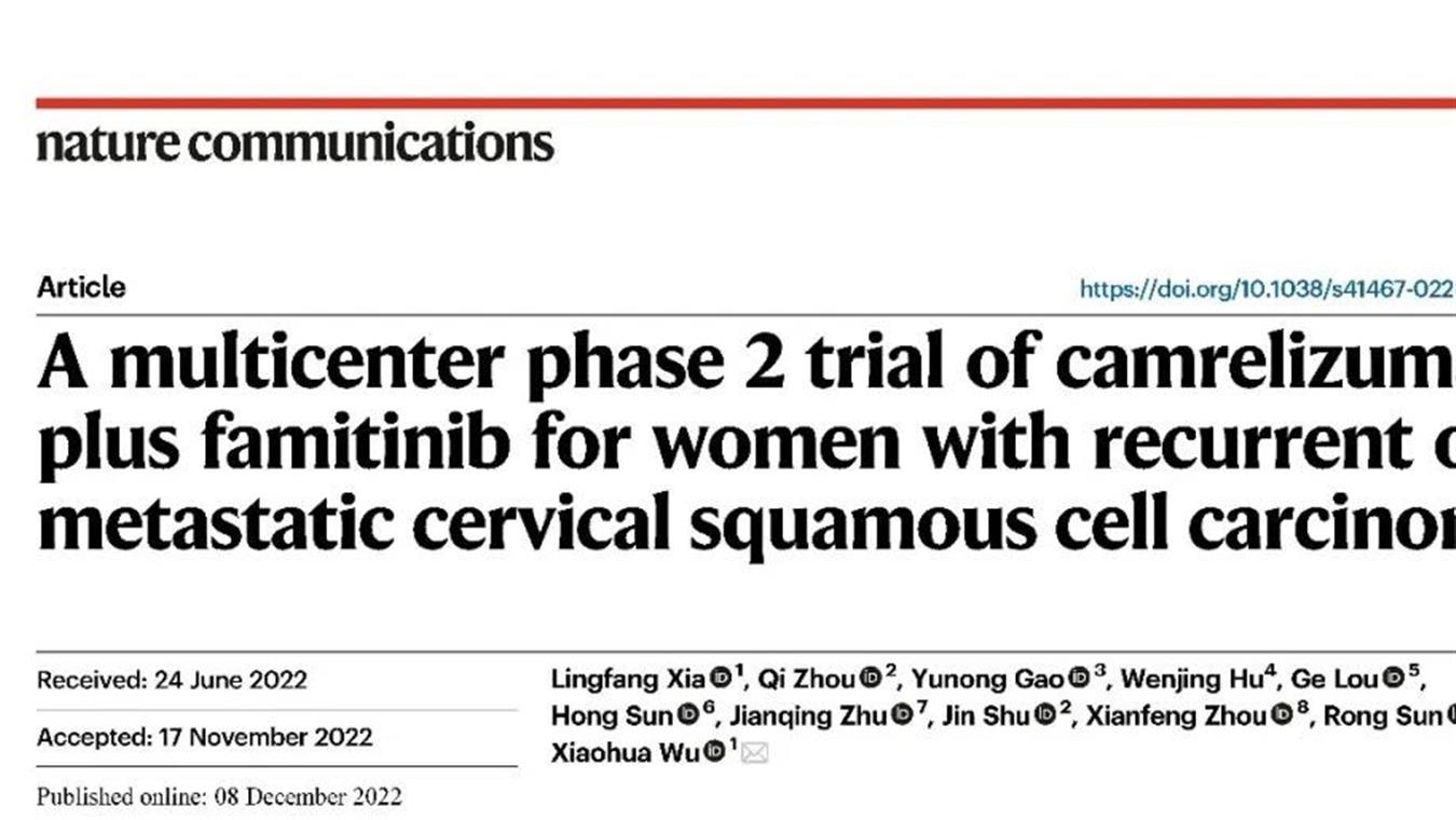 利来国际w66创新药卡瑞利珠单抗联合法米替尼用于复发或转移性宫颈癌研究结果荣登JCO
